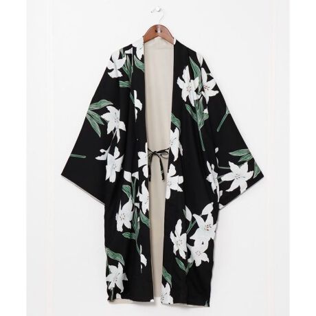[型番:76R-6103-2026]和の花を描いたリバーシブル仕様の着物羽織。立てば芍薬、座れば牡丹、歩く姿は百合の花という言葉にちなんだ、芍薬・牡丹・百合の三柄をモチーフにしています。さらりとした質感のポリエステル生地で、お手入れも簡単。ユニセックスで着用でき、和の優美さと現代的な軽やかさを兼ね備えた羽織です。リバーシブル着用可能。