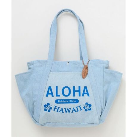 [型番:42VP6101-2026]デニム素材のトートバッグ。ユニセックスで使えるシンプルなデザインが魅力。ハワイらしいカジュアルスタイルにも合わせやすく、マチ付きで収納力も抜群。毎日のコーディネートに自然に馴染むアイテム。