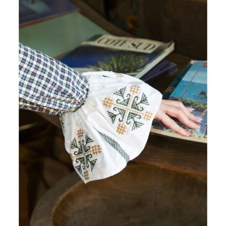ルーマニア刺しゅうをイメージした、華やかな模様が目を惹くシュシュヘアゴム。大きめサイズでまとめ髪のアクセントにぴったりです。