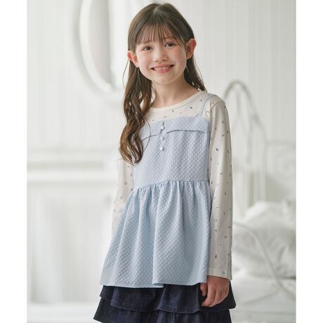 ■デザイン小さな音符を散りばめたカットソーに、ふんわりと広がるキャミソールをドッキングした重ね着風トップスです。