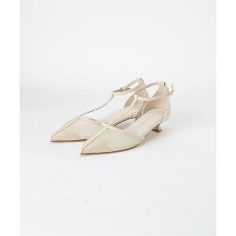 甲にかかる華奢なTストラップとシアーなチュールの透け感が女性らしいパンプス。