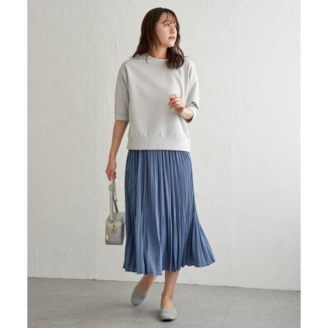バックのメタルジップがポイントのプルオーバーと、体型カバーもできすっきり見えするプリーツスカートです。