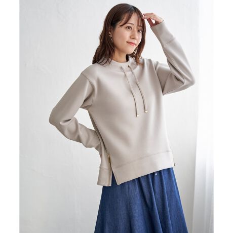 ・首元にきれいに沿ったモックネックはカジュアル過ぎず大人な雰囲気の抜け感を演出