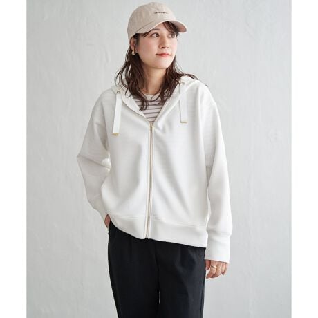 表面に鹿の子編みを施したダンボールニットをのパーカ。