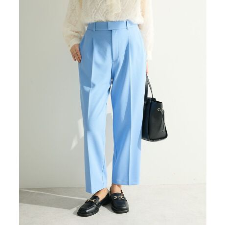 ストレッチ性のあるツイル調素材で仕立てたテーパードパンツ。フロントタックでゆとりのある腰周りに、センタープレスを施したきれいなシルエットが特徴です。ウエストバックゴム仕様でソフトフィットな穿き心地も嬉しいポイント。どんなトップスも着合せやすく、カジュアルからオケージョンまで幅広いシーンで活躍するおすすめのアイテムです。ご家庭でお手入れ可能。透け感[なし]