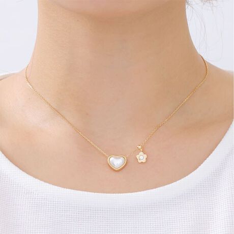 ハート型のパールがフェミニンな印象のアクセシリーズ。◆シリーズ共通ポイント・デイジーはメタルで表現・デイジーのセンターにビジュー入り◆アイテム紹介(ネックレス)・デイジーはスライドボールで位置を変更できるデザイン・アジャスターにもスライドボールを使用[型番:225-904635]