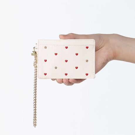 ぷっくりしたハートを散りばめたシリーズ。◆シリーズ共通ポイント・ハートとデイジーは立体的なプリントで表現・デイジーはゴールドカラー・ロゴプリントのBOX入りでプレゼントにもおすすめ◆アイテム紹介(シングルパスケース)・バッグの持ち手にかけられるチェーン付きポケット×2透明ポケット×1窓付きポケット×1※窓付きポケットは、カードを取り出しやすくするため収納したカードに直接触れられる仕様です。[型番:225-914535]