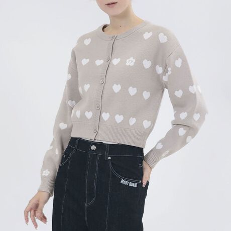 ハート総柄のニット・カーディガン。◆ポイント・ハートの中にさり気なくデイジー!・FRONTボタン開き・長袖◆コーディネートフェミニンなコーデにおすすめです。[型番:225-704820]