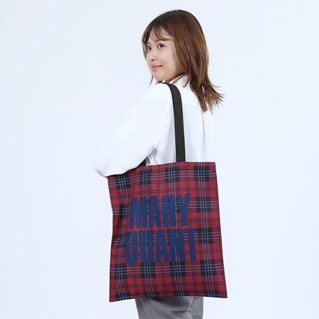 ・レッド:タータンチェックにネイビーのロゴ&デイジー