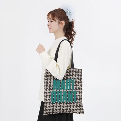 ・ベージュ:ブラウン系の千鳥柄にグリーンのロゴ&デイジー