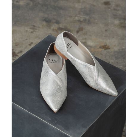 フェイクレザー Vカット フラットパンプス