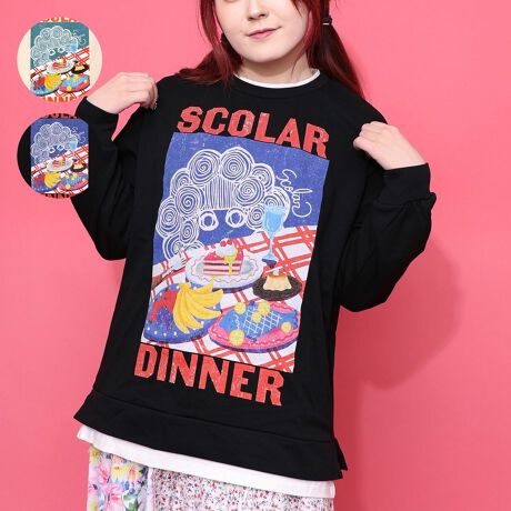 マルイウェブチャネル   /   トップス   /   スウェット・トレーナー   /   ScoLar スカラー スカラーちゃんの夕食柄レイヤード風配色プルオーバー