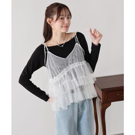オールシーズン使いやすいフェミニンなチュールキャミソールビスチェ