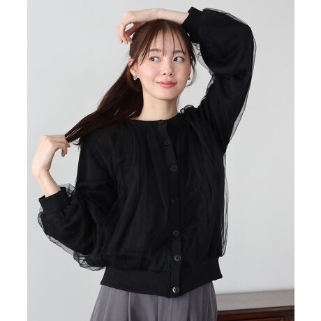 チュールレイヤードスウェットカーディガン