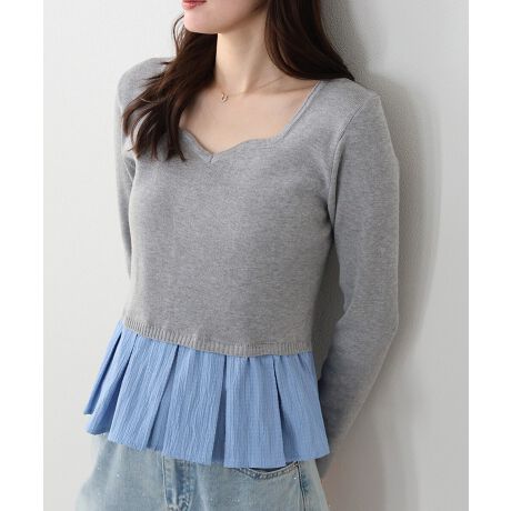 プリーツドッキングとハートネックがフェミニンな魅力のニットトップス。