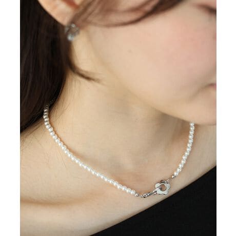 パール×フラワーモチーフメタルの大人かわいいネックレス
