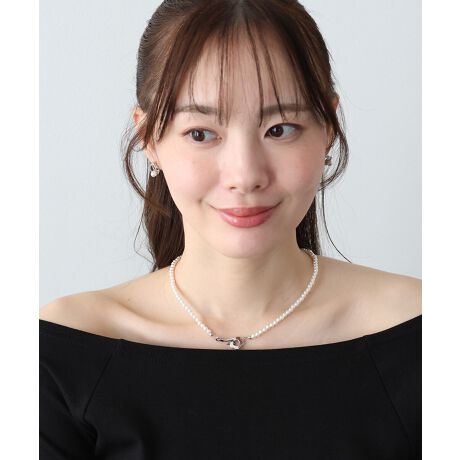 控えめな小粒パールにフラワーモチーフをプラスしたネックレス。