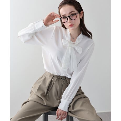 レース×リボンが大人ガーリーなボウタイブラウス