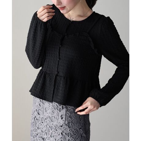カットソーにビスチェをレイヤードしたようなデザインがシルエットにメリハリをプラス。