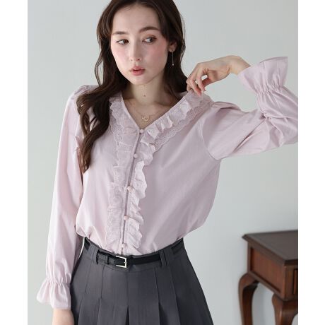 繊細なフラワーモチーフのレースを贅沢に使用し、ロマンティックなフリルをあしらった着映えブラウス。