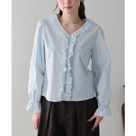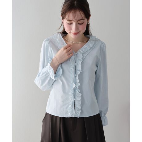 繊細なフラワーモチーフのレースを贅沢に使用し、ロマンティックなフリルをあしらった着映えブラウス。