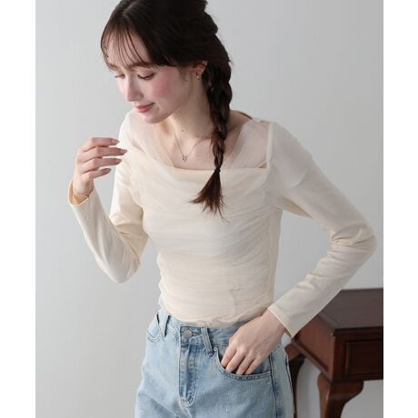 マルイウェブチャネル   /   ブルーイースト   /   トップス   /   Tシャツ・カットソー   /   チュールドッキングドレープカットソー