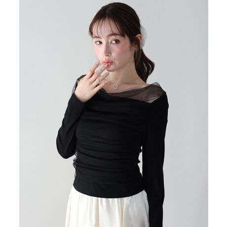 柔らかなカットソー素材に、軽やかな透け感のチュールを重ねることで、