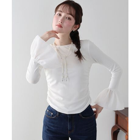 大胆なフレアースリーブながらも、カットソーと同色なので目立ちすぎずコーディネートに取り入れやすいデザイン。