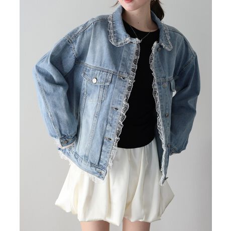 カジュアル×フェミニンなレースドッキングデニムジャケット