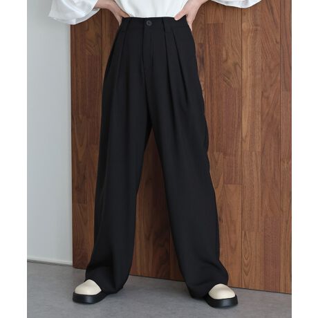 腰回りに施した深めのタックが、立体的なシルエットとゆとりを生み出すワイドスラックス。