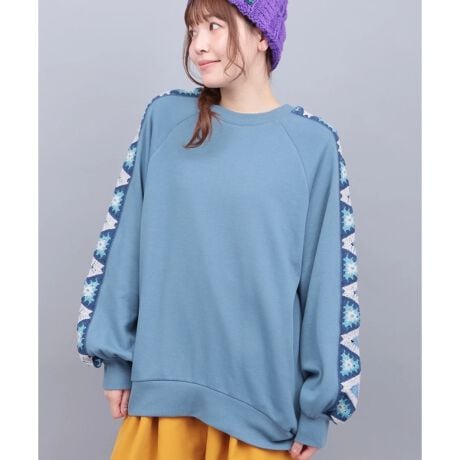 ベーシックなスウェットの袖部分にクロシェ風のラインが効いたゆるっと万能プルオーバー。