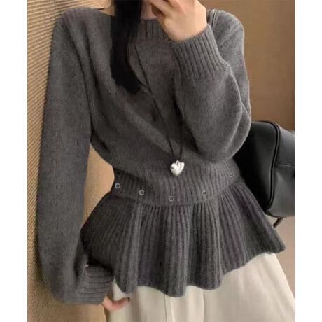 ニットトップス韓国風ペプラムニット春秋冬