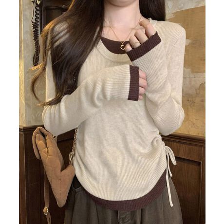 1枚で重ね着風スタイルが完成する、配色デザインの長袖トップス。