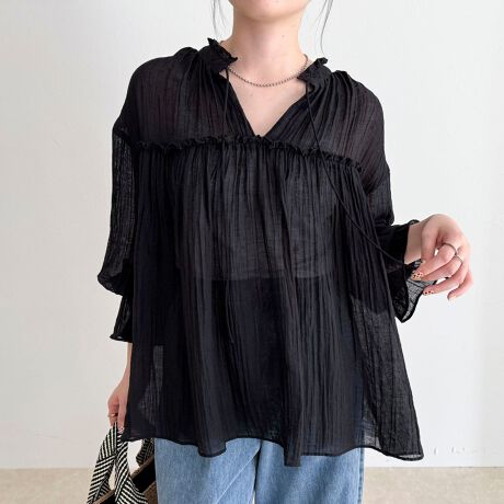 軽やかな透け感が魅力のリネンシアーブラウス