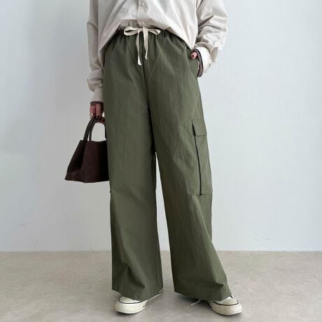 ・シャカシャカとした軽やかな素材感でカジュアルに映えるカーゴパンツ