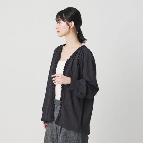 存在感のあるフリルディテールは一枚での着用はもちろん、ジャケットやカーディガン、ジレのインナーにも映える着回し力抜群のアイテムです。