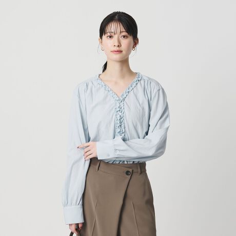 【WEB限定 Wardrobe DAILY MINIMAL】ラッフル Vネックブラウス ウォッシャブ
