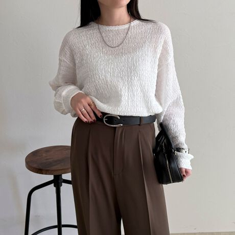 ・スラックスやタイトスカートなどのきれいめアイテムとも好相性でオンオフ問わず幅広いスタイリングに活躍する一枚です