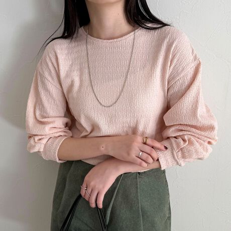 ・表面感のある生地を使用した、ブラウス見えが叶うカットソー