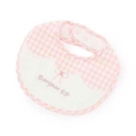 やわらかなパイル地に、ギンガムチェックでスカラップ柄をアップリケしたスタイ。
