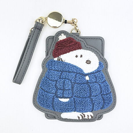 スヌーピーの暖かそうな恰好の姿が可愛いダイカットパスケースです。伸びるリール付が嬉しいポイント☆バッグなどに付ければアクセントになること間違いなし!いつもと違うスヌーピーが楽しめます♪