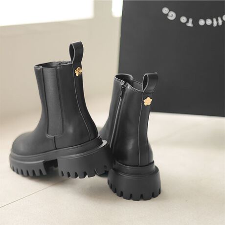 シンプルなデザインのサイドゴアブーツ。◆ポイント・BACKのデイジーカシメ・丸みのあるシルエット・つま先とかかとの高低差が少ない厚底のソール・内側ファスナー開き仕様◆コーディネートトレンドに左右されないデザインで、カジュアルからフェミニンコーデまで幅広く活躍します。[型番:225-934012]