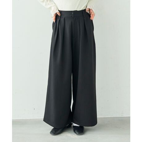 穿くだけでスタイリングが整う、ダブルタック入りワイドパンツ。