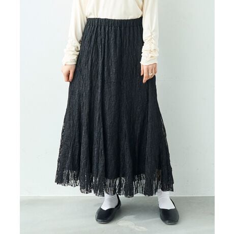 歩くたびに生まれる柔らかな揺れ感とレースの透け感が、女性らしさを引き立てます。
