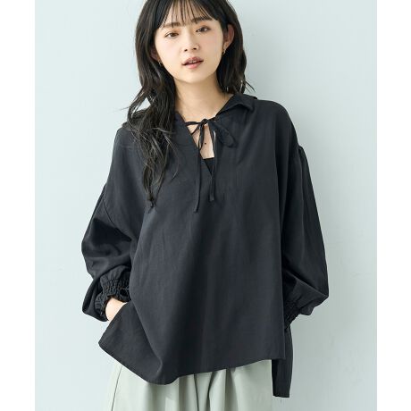 ふんわりとギャザーが入ったスリーブが、フェミニンな印象をプラス。