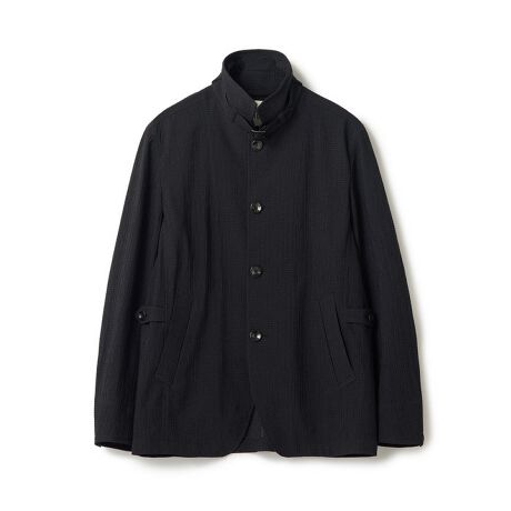 スタンドカラーとの相乗効果で、カジュアルながらも端正な印象に仕上げています。