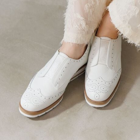 メダリオンデザインがカジュアルになり過ぎず、ドレッシーな足元に仕上がる一足です。