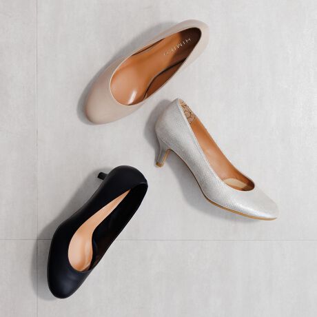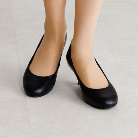 程よく丸みのあるラウンドトゥは女性らしい柔らかさを感じさせるデザイン。5.5cmヒールはコーディネートとのバランスが取りやすく、スタイルアップも叶います。