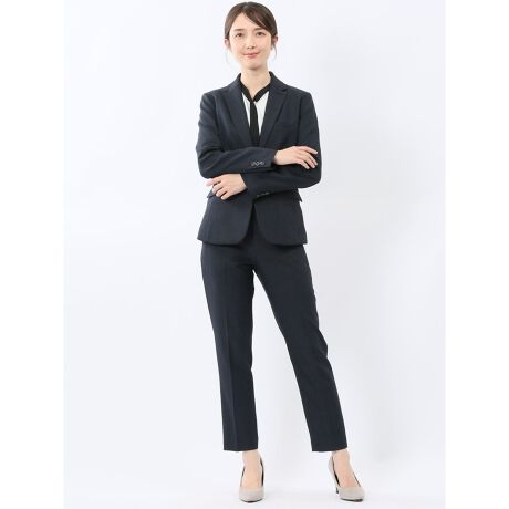ストレッチウォッシャブル 1ボタンジャケット+テーパードパンツ 紺