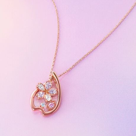 ピンクとブルーのキュービックジルコニアが寄り添う立体感のある花びらのデザインは取り外し可能で、シンプルな5枚花のデザインだけでもお楽しみいただけます。